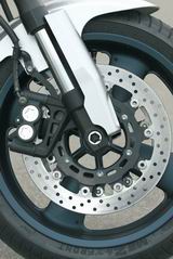 Передние тормоза – двойные дисковые диаметром 320мм. Задний тормоз – один