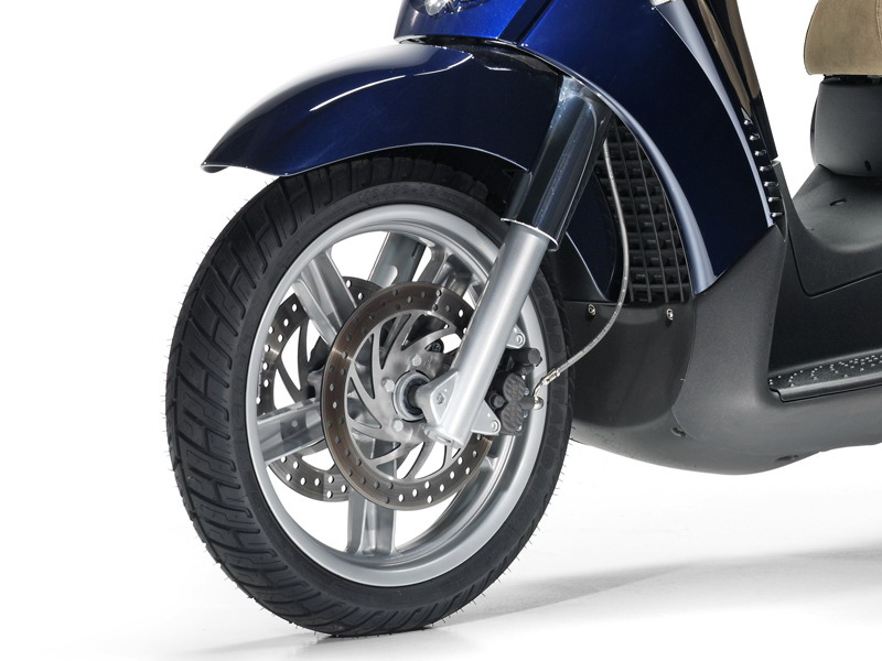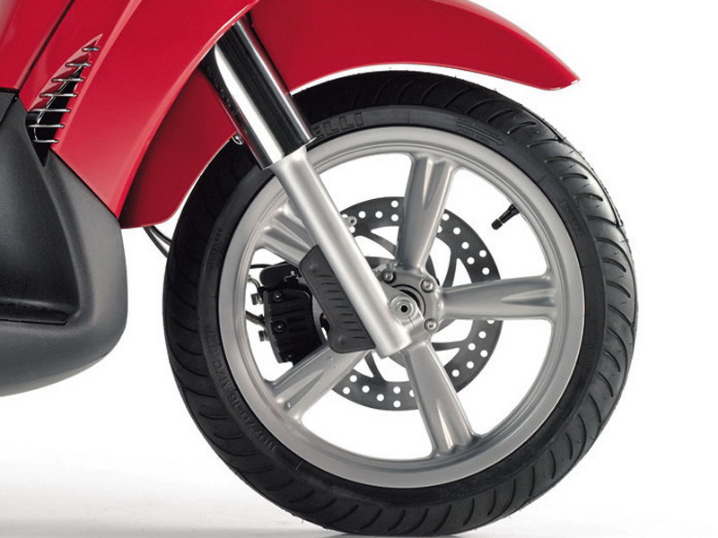 Задняя: 130/70 x 10”Тормоза Передний: 1 диск из нержавеющей стали Ø 190 мм, суппорт с двумя оппозитными поршнями Ø 30 мм;