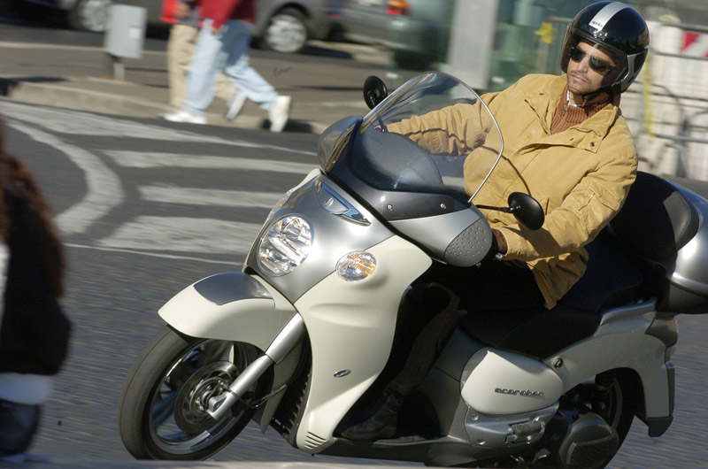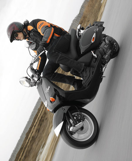 Но это – удобства. Что же до главного качества скутера – «антипробочности» – то здесь никаких сюрпризов не возникло. Маневренность и в «пробках», и в быстроидущем (км/ч этак 100-110) потоке – как у обычного утилитарного скутера вроде Piaggio Skipper, но с поправкой на лучшую разгонную и тормозную динамику. Да, машина не так сильно «обжата» по габаритам, как, скажем Gilera Runner VXR, да и «лишние» 20-25 кг массы чувствуются. Но база точно такая же (1340 мм), а что до «лишнего» пластика на «хвосте» и большей ширины «морды»… Ну, тут уж выбирайте, ветрозащита или способность продираться сквозь «глухие» пробки. Как и в случае с упомянутыми «утилитарными» моделями, имеющими ничуть не меньшие габариты.