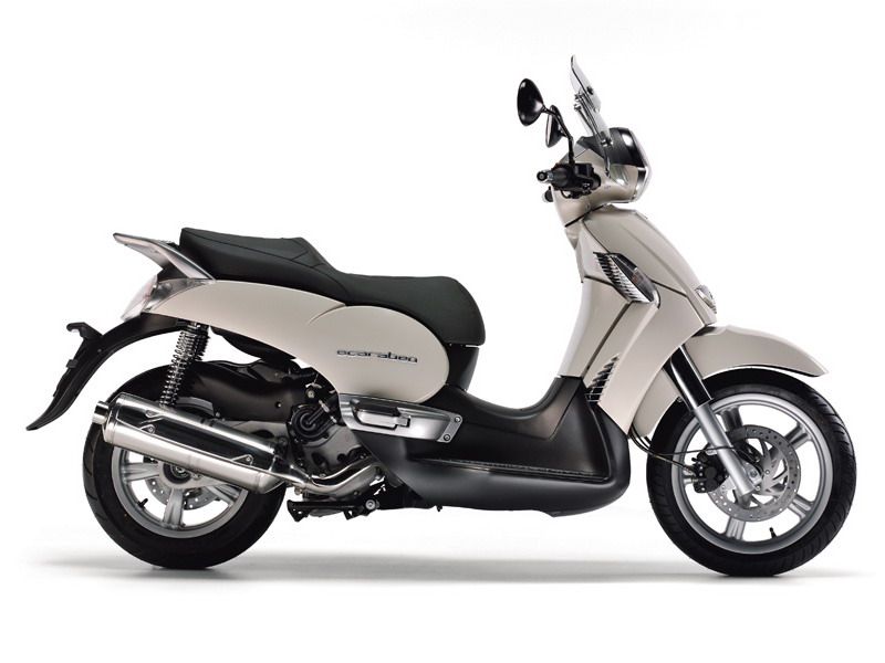 Бесспорно Scarabeo это главный герой больших и маленьких городов. Элегантная и оригинальная из-за новых, облегчённых крыльев, защиты ног и белых индикаторов поворота, последняя модель доводит до совершенства представление о классическо-современном дизайне и сочетает в себе технические новшества и стиль, превосходящий моду. Scarabeo это один из немногих продуктов, совмещающих законы классической элегантности и в то же время быть символом воплощения современности. Scarabeo это самое высокое выражение формы и функциональных возможностей.