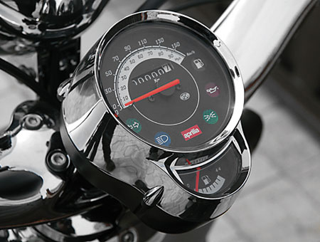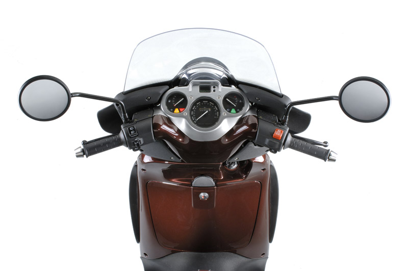 Приборная панель легко читаема и содержит в себе спидометр, одометр, уровень топлива, датчик температуры и часы. Передняя фара с галогенной лампой, обеспечивает достаточно света для ночной езды. Добро пожаловать в мир Scarabeo!