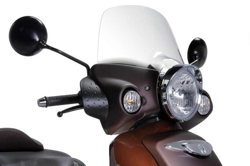 Словом, всё, как на японском прообразе (ага, я о Honda Joker образца 1997 года). Вот только линии отнюдь не аляповатые. Видимо, копировщики были более профессиональны, чем дизайнеры, создавшие оригинал. А потому всё по-европейски отточенное – как будто подзаплывшую жирком японку годик гоняли в хороший фитнес-центр. В результате «хвост» уже не напоминает «корму» утки – теперь всё, как и было, видимо, задумано японцами. Плюс четырёхтактный мотор (при всей своей горячей любви к двухтактникам не считаю их уместными на аппарате в подобном духе).