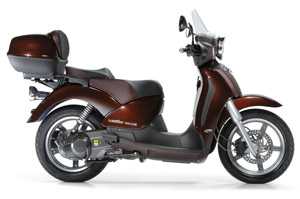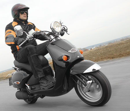 Весьма примечательный скутер. Как по дизайну, так и по сочетанию характеристик – довольно небольшие габариты при мощном моторе делают его городской «ракетой». Был создан путём «скрещивания» стандартного городского скутера класса 150 см3 с мотором от Yamaha Majesty 250.