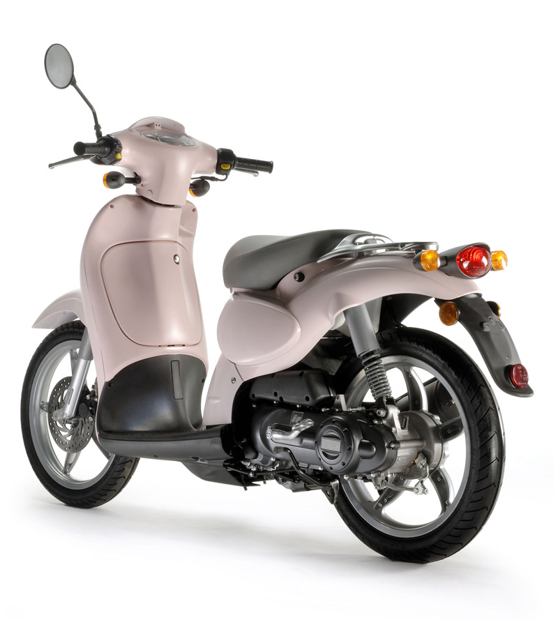 Двигатель Одноцилиндровый, двухтактный, воздушного охлаждения Диаметр цилиндра и ход поршня 40 X 39.2 мм Рабочий объем 50 куб. см. Степень сжатия 12.5:1 Система питания Карбюратор DELL’ORTO PHBN с диаметром диффузора - 12 мм. Первичная передача Ремень V-belt Передача усилия Зубчатая Коробка передач Автоматическая, вариатор Сцепление Центрифуга, автоматическое Генератор 12 В - 85 Вт. Стартер электрический и кик-стартер Зажигание электронное Рама Передняя балка переходящая в двойные задние скулы Подвеска Передняя: 28 мм гидравлическая вилка, ход колеса - 80 мм