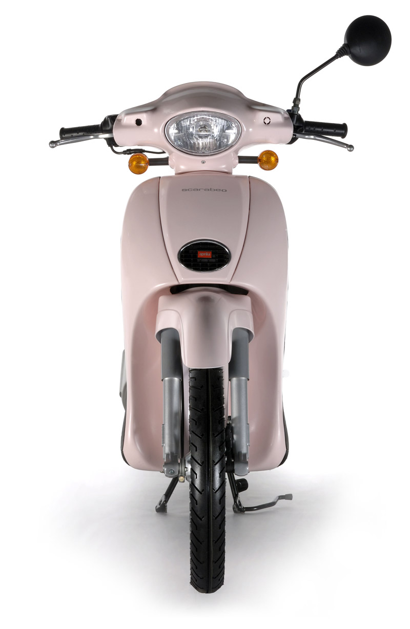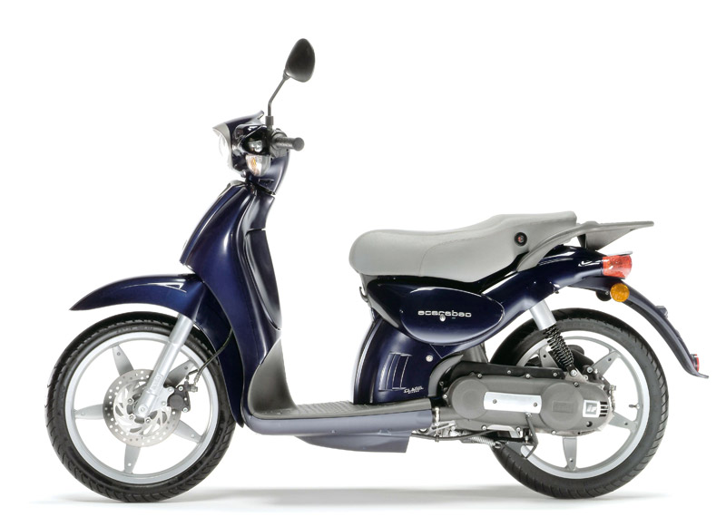 Направленный на молодое поколение, Scarabeo 50 предлагает легко войти в мир Scarabeo, первый из полного спектра большеколёсных скутеров, с пятью разными объёмами двигателя (50, 100, 125, 250 и 500) и выбором из 2хтактного и 4хтактного двигателей.