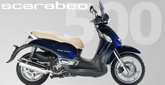 Scarabeo представляет выбор из продвинутых, надёжных и экологически чистых четырёхтактных двигателей объёмом 50 и 100 куб. см. Со своими революционными технологиями и ошеломляющим внешним видом Scarabeo подтверждает своё лидерство на быстро меняющемся рынке скутеров. Лёгкий, манёвренный и привлекательный Scarabeo сочетает отменный стиль и практичность.