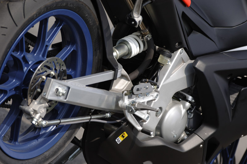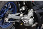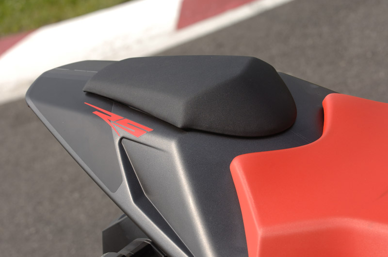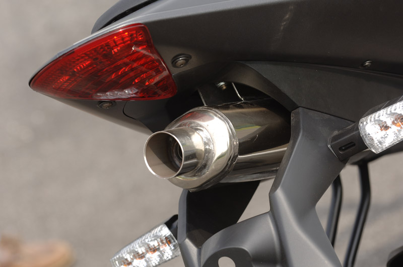 Обтекаемый, стройный задний пластик, намекает что мотоцикл создан для участия в гонках, а также скрывает расширительный бачок и выпускную систему, которая тесно связана с миром гонок, что улучшает распределение баланса и веса.