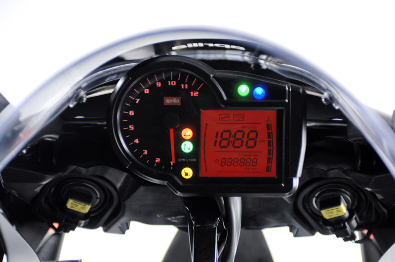 Помимо прекрасного двигателя, рамы, тормозов и прочего, счастливые владельцы Aprilia RS 50 извлекут выгоду и из других компонентов большинство которых можно найти только на высокообъемных мотоциклах. Возьмите, например, алюминиевый рычаг тормоза и сцепления, алюминиевые подставки для ног, глушитель высокого уровня и бескамерные радиальные шины. Aprilia даже оборудовала RS 50 с передовой многофункциональной приборной панелью. Эта компактная аналоговая-цифровая приборная панель действует как реальный бортовой компьютер. В дополнение к всем обычным параметрам и функциям, она также включает встроенный таймер круга, чтобы позволить завтрашним чемпионам сделать запись их лучших кругов.