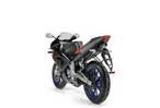 Агрессивные линии новой Aprilia RS 50 обусловлены новым обтекателем протестированным в аэродинамической трубе. Новые парные фары также дают намного лучшую видимость и вносят свой вклад в агрессивный вид этого невероятного 50 куб.см. мотоцикла.