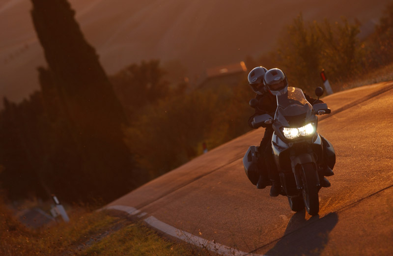 Город, как вы уже поняли, не его стихия. А бескрайние шоссе, где можно легко держать скорость под 200 км/ч - это по душе «итальянцу». Прекрасные аэродинамика (все-таки не зря формы облицовки продувались в трубе) и способность держать траекторию сразу рождают в сознании мысли о дальних странах, где можно вот так «пилить» и «пилить» по автобану, наслаждаясь красотами за обочиной. Дальше мысль несет на горные серпантины Италии (эдакое воспоминание о родине), где аппарат покажет все свои спортбайковские способности по закладыванию в поворотах. В общем, на нем реально хочется путешествовать, и, что важно, модель на это способна. Жаль, что визы не оформлены, а то и вправду все бросил бы и «полетел»…
