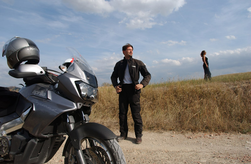 Еще пару лет назад марка Aprilia воспринималась мною как что-то очень экзотичное, совершенно далекое от реальной жизни. Но сейчас ситуация резко изменилась, бренд активно продвигается на европейском рынке и в Америке. Причем компания вполне успешно «закрывает» самые престижные «ниши» рынка, будь то литровые спортбайки (RSV1000R) или мега-скутера (Atlantic). Добрались итальянцы и до рынка больших туристических мотоциклов, которые мы по-прежнему называем эндуро. Хотя, как мне кажется, американцы нашли более точный термин для этих длинноногих тяжеловесов - dual purpose, то есть двойного назначения. На практике это означает, что мотоциклу никогда не суждено покинуть асфальт. За редким исключением. Ведь в любой стране всегда найдется безумный фанат, который и Ducati Multistrada загонит в грязь по самое «не балуйся»…