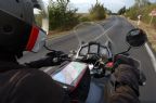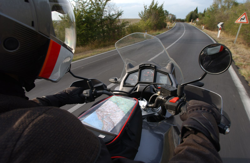 Черт побери, какое же здесь тугое сцепление! Если представить, что где-то с полчаса пробираешься по какому-нибудь «оффроуду», где постоянно приходится «подыгрывать» рычагом сцепления, то последующие минут двадцать потребуются на разминание кисти левой руки. Для «туриста» это явный минус. Но это теоретические умозаключения, а пока я в городе, на асфальте. С первых же минут движения попадаю в плотный «трафик». Здесь «итальянец» на высоте в буквальном смысле этого слова. Высокая посадка вкупе с длинноходными подвесками, плюс очень неплохая «поджарость» мотоцикла (в том смысле, что по бокам ничего не торчит, а зеркала расположены значительно выше таковых у легковых машин), позволили мне, практически не останавливаясь, «прошить» автомобильные заторы и вырваться на свободу за город. Вот она, ленточка к горизонту, разгоняюсь… И на этой же первой прямой сталкиваюсь с хорошо знакомым мне по Suzuki Bandit 1200S эффектом. Где-то после 140 км/ч ветер довольно ощутимо начинает бить по шлему в… затылок.