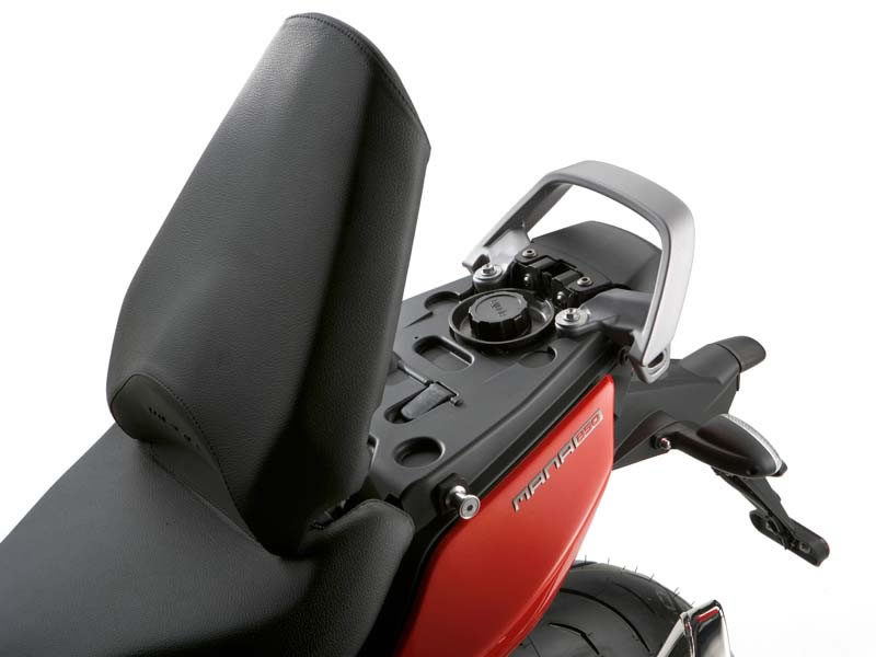 При такой компоновке места под бензобак, да ещё и полноразмерный (15 литров!) было маловато. А потому и его разместили по-скутерному, под седлом. По-скутерному расположена и пробка бензобака: под откидывающейся пассажирской частью седла. Может быть, это и менее удобно, нежели справа седла, как у некоторых BMW и Italjet, зато позволяет плотнее использовать пространство, а значит, максимально увеличить объём бензобака.