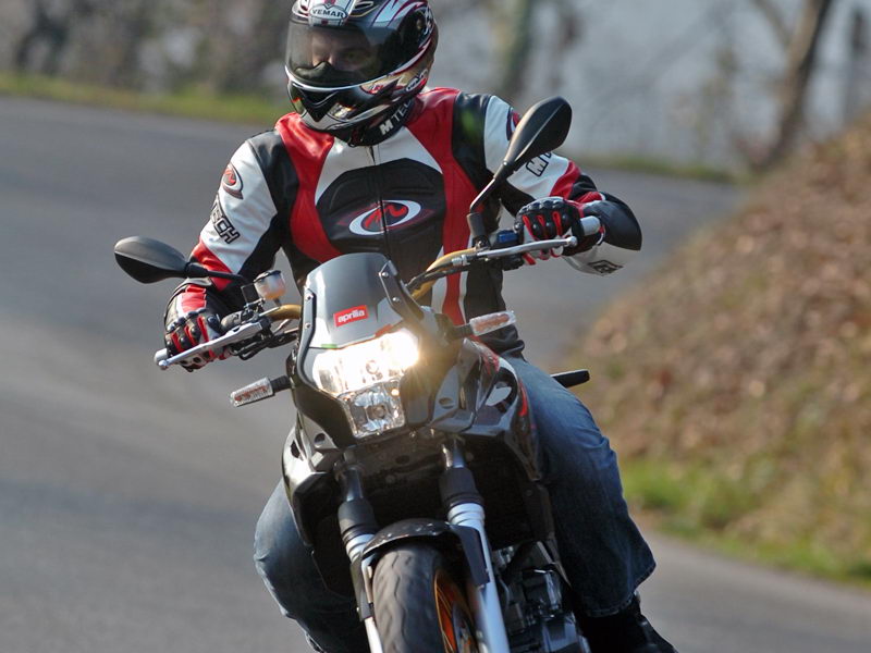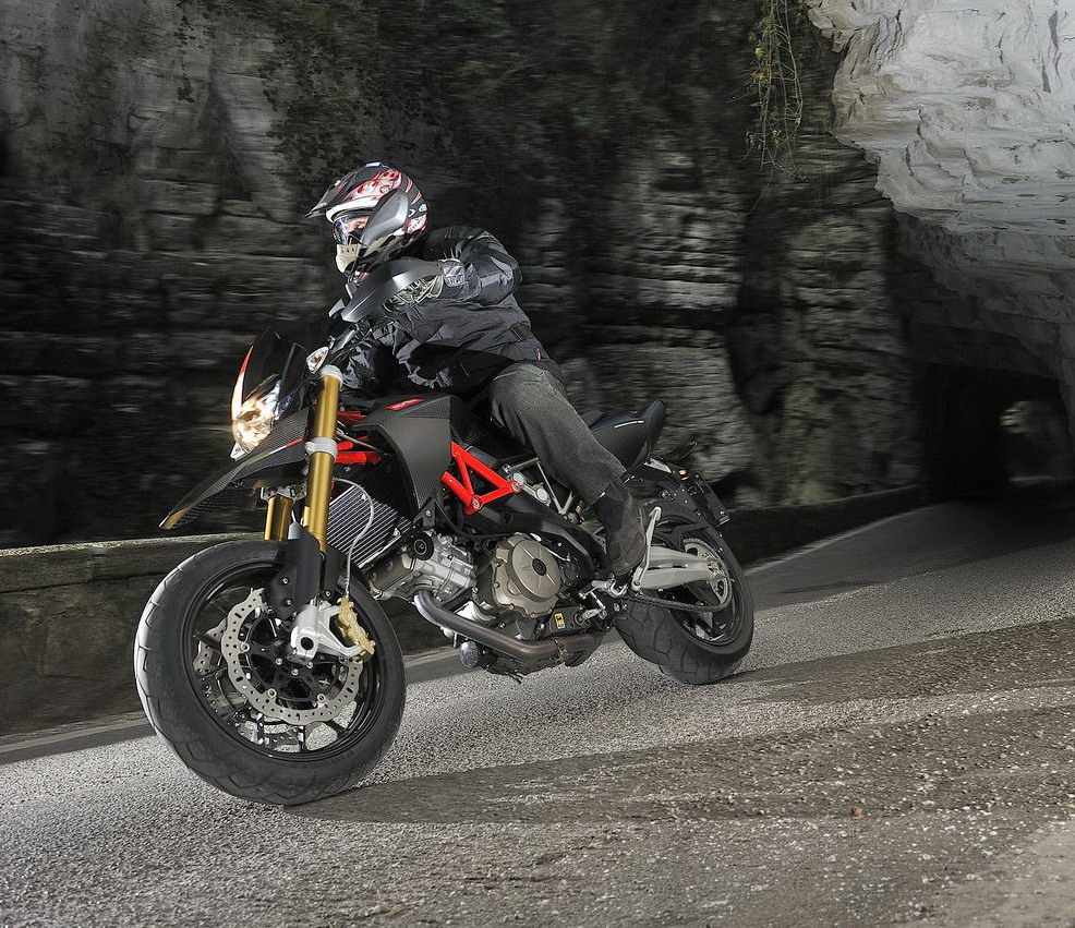 Главной фишкой мотоцикла является, вне сомнений, 1200-кубовый Twin. Он вдохновляет на подвиги с самого начала, а максимальная мощность в 130 л.с. - как раз то, что нужно этой машине. Никаких астматических тенденций, вроде тех, что были у 750-кубового Shiver‘а: волна энергии накатывает с самых низов, превращая Dorsoduro 1200 в настоящую wheelie-машину.