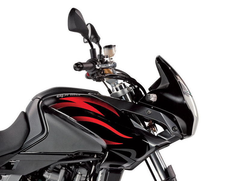Двигатель Одноцилиндровый легкосплавный, 4-х тактный, 4-х клапанный, жидкостного охлаждения с антивибрационным валом. Диаметр цилиндра и ход поршня 100 x 84 мм Рабочий объем 660 куб. см Степень сжатия 10:01 Максимальная мощность 48 л.с. при 6.000 об/мин Максимальный крутящий момент 59 Нм при 5.000 об/мин Система питания Интегральная электронная система управления двигателем. Электронный многоточечный впрыск. Впускной диффузор Ø 44 мм Зажигание Электронное Стартер Электрический Генератор 12 В - 200 Вт Система смазки Сухой картер, масляный насос Выпускная система Коробка передач 5-и ступенчатая: 1-я 12/30; 2-я 16/26; 3-я 20/23; 4-я 22/20; 5-я 26/20 Первичная передача Прямозубые шестерни, передаточное отношение: 36/75 Главная передача Цепь, передаточное отношение 15/44 Рама cтальная, открытая, одинарная Сцепление Многодисковое в масляной ванне Колесная база 1.479 мм Колесо переднее: 3.50 x 17" Колесо заднее: 4.50 x 17" Шины передние: 110/70-17 Шины задние: 160/60-17 Тормоз передний FTE нержавеющий стальной плавающий диск Ø 320 мм. 4-е поршня. (Brembo) Тормоз задний Один диск Ø 240 мм, 2-а поршня. (Brembo) Подвеска передняя Вилка Ø 45 мм. Ход колеса - 140 мм Подвеска задняя Маятник коробчатый из легированной стали; Aprilia Progressive System (APS) linkage. Sachs гидравлический амортизатор с предварительной регулировкой поджатия пружины. ход по оси 130 мм Высота по седлу 780 мм Максимальная длина 2.173 мм Максимальная ширина 810 мм Максимальная высота Дорожный просвет 250 мм Топливный бак 16 литров (3.5 литра - резерв) Тип топлива Аи-95 Сухая масса 168 кг Цвет Special Nero