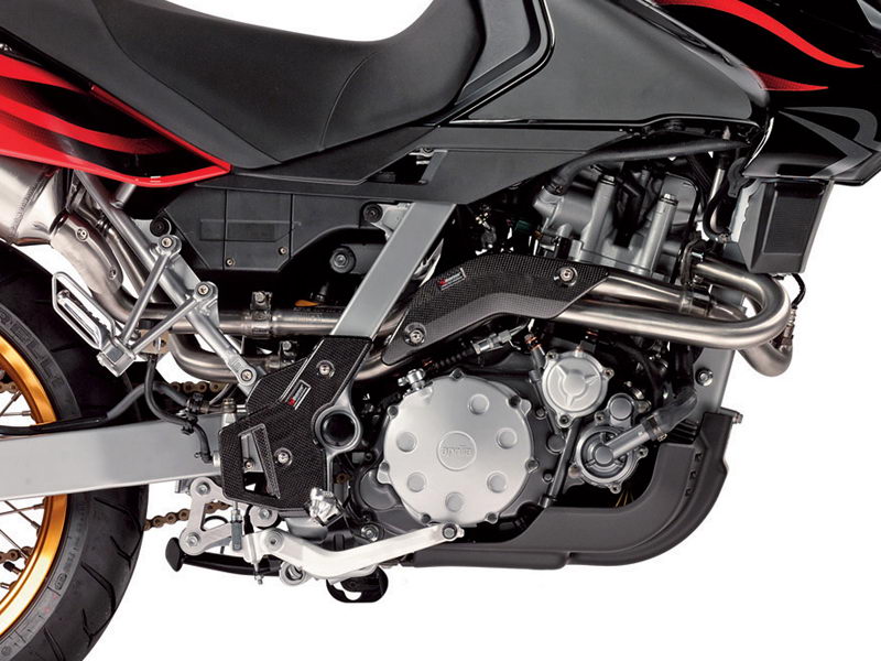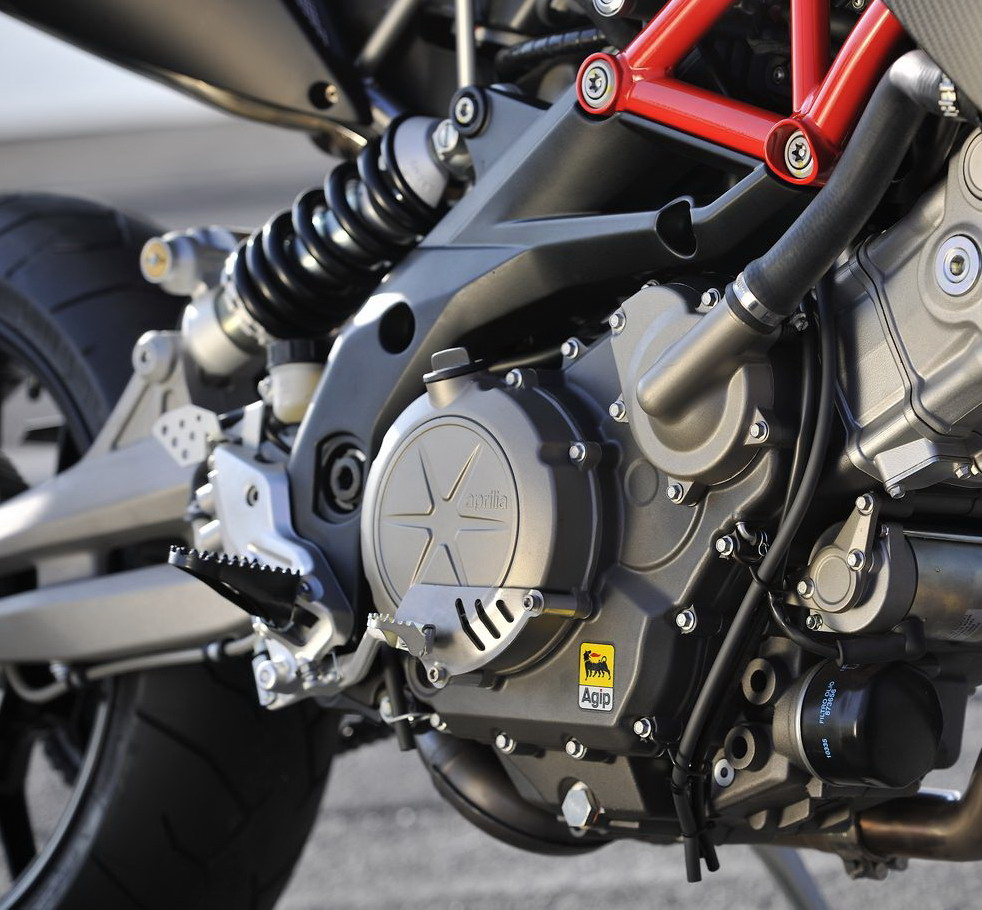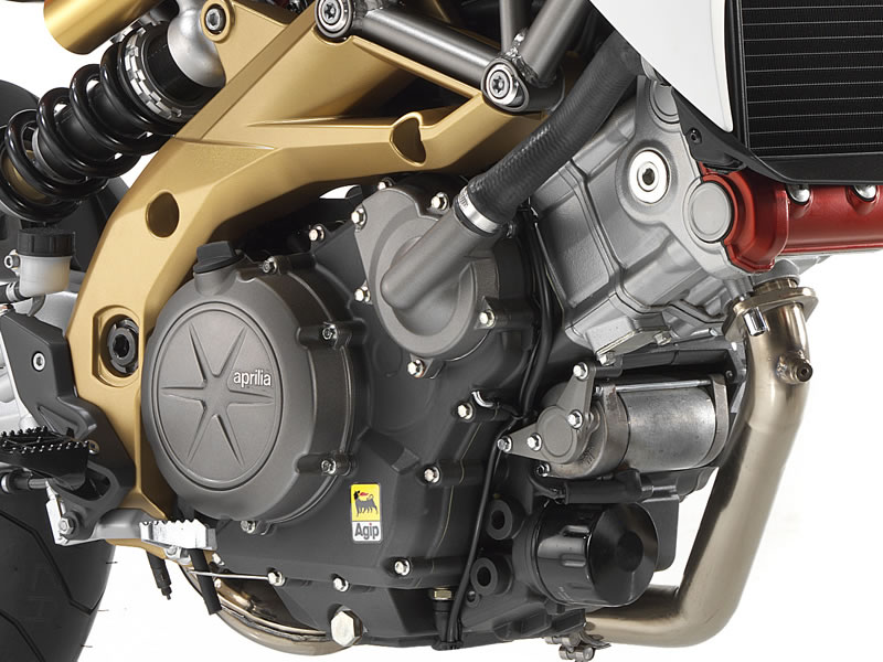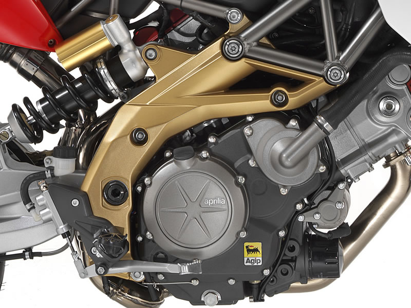 - Двухцилиндровый V-образный с углом развала 90° разработанный Aprilia двигатель , 4-х тактный с жидкостным охлаждением, двухвальный механизм газораспределения, 4 клапана на цилиндр.