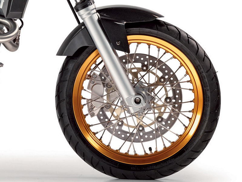 Спицованные алюминиевые колеса - классическая особенность класса эндуро. В соответствии с доказанной мотоциклетной технологией для бездорожья, Pegaso 650 Trail оборудован 19-дюймовым передним колесом, для легкого и четкого управления на грунтовой дороге.