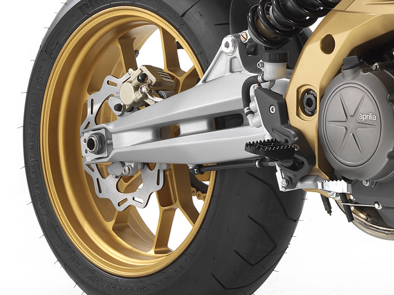 Подвеска - Эффективна на любых поверхностяхИдеальная подвеска – одна из главных целей разработчиков Aprilia. Высококачественная подвеска особенно важна для мотоциклов, которые изначально создаются для получения острых ощущений. Вилка и задняя подвеска регулируются по сжатию, отбою и предварительному поджатию.