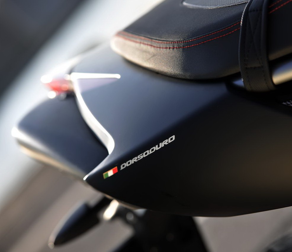 В этом смысле Dorsoduro 1200 – отличное сочетание мощности, точности руления и быстроходности. Название нового двигателя – V90. У мотора имеется впрыск, работающий по технологии Ride-by-wire, в общей сложности три схемы впрыска, жидкостное охлаждение, двойные камеры сгорания, четыре клапана на цилиндр, зажигание от двух свечей каждого.